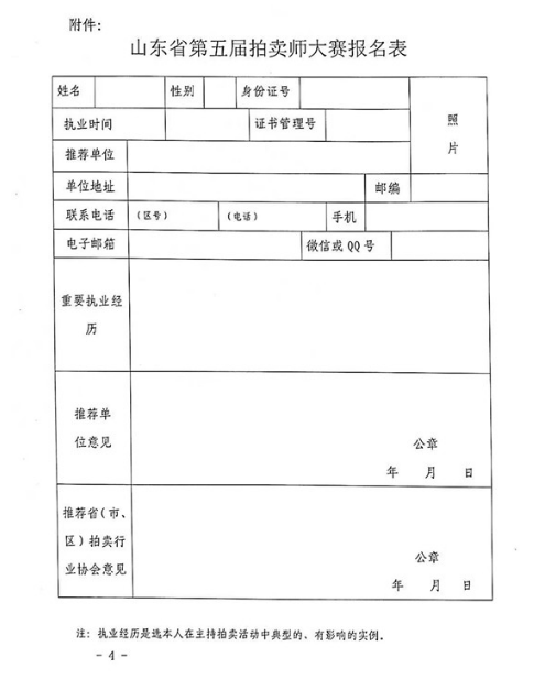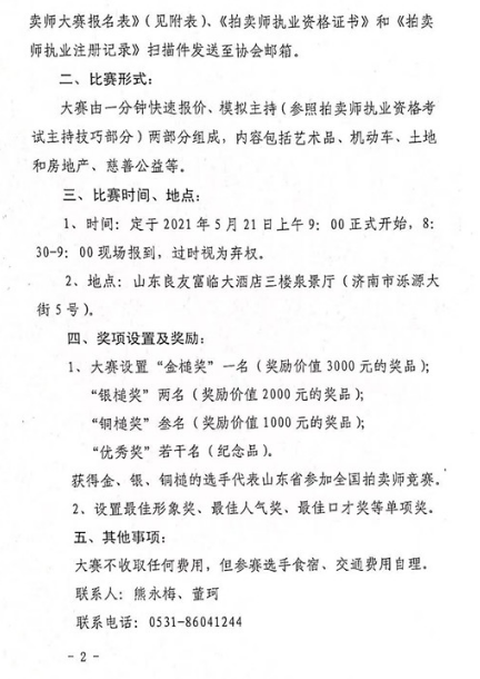 山東省第五屆拍賣師大賽內(nèi)容和規(guī)則