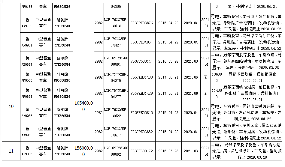 我公司定于2020年10月28日10:00在中拍平臺(http://paimai.caa123.org.cn)拍賣中型普通客車11個包,品牌有齊魯、舒馳、中通、牡丹,共計55輛,每包保證金5萬元。